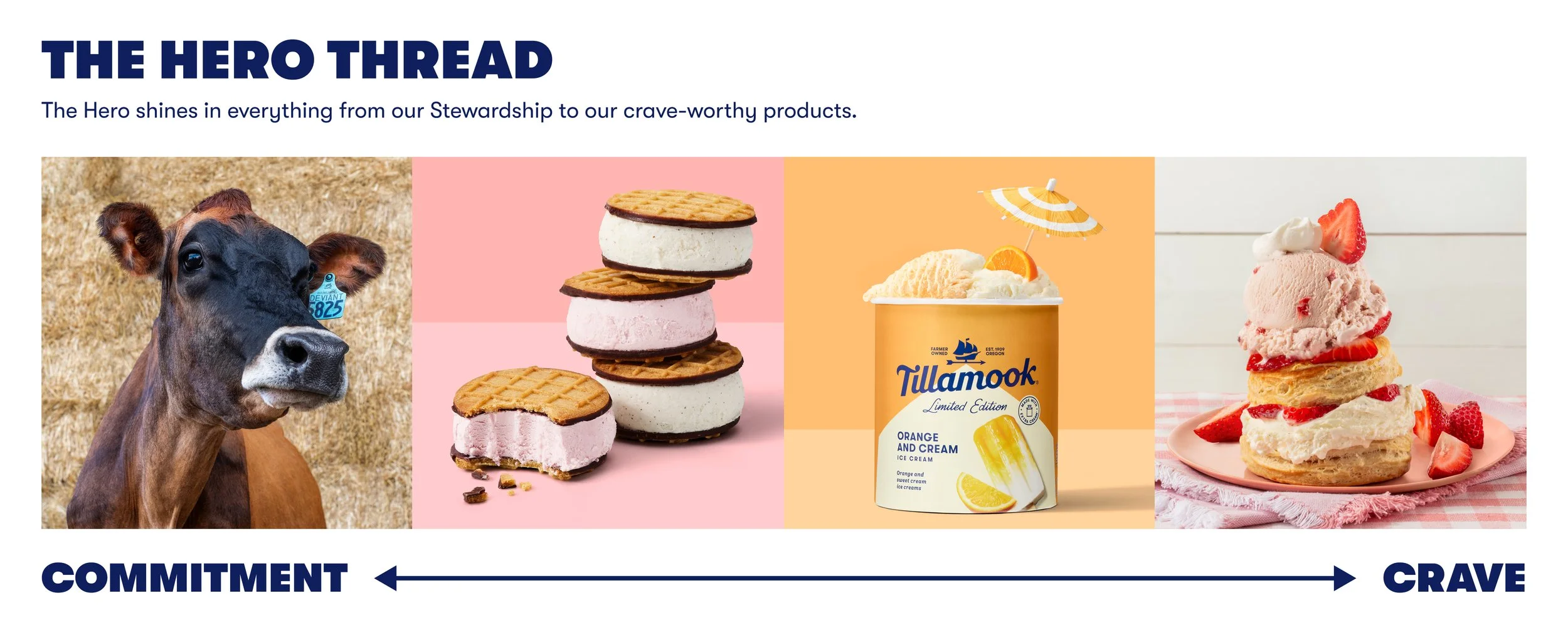 Tillamook County Creamery Association is a farmer-owned co-op that makes premium dairy products. As a certified B-Corp, the brand's Stewardship pillar sets it apart, by telling the stories of thriving farms, healthful cows, inspired consumers, enduring ecosystems, fulfilled employees, and enriched communities. The strategy for the art direction was to create consistent storytelling that connected the Stewardship content with the product campaigns. For the photography art direction we used the concept of the hero, bright natural light, and a strong use of color, to create consistency across the Tillamook brand.